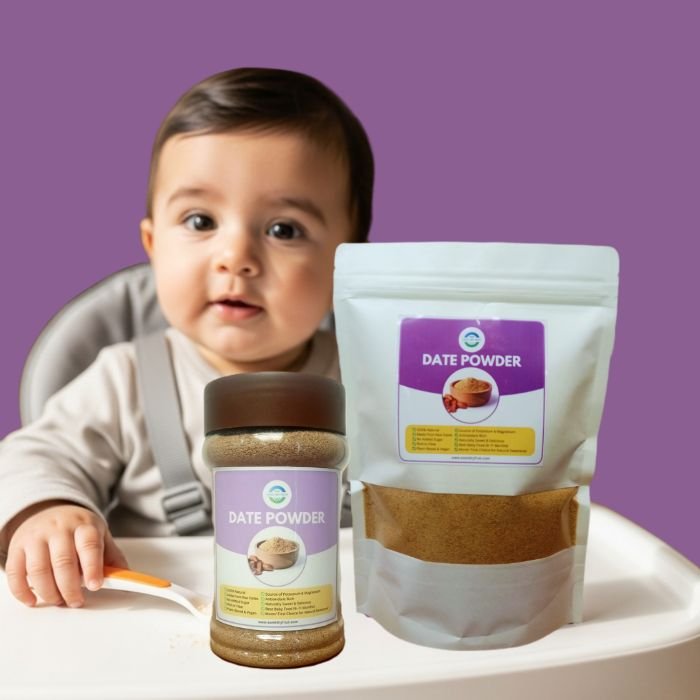 Packed with essential nutrients, fibers, and minerals, Date Powder is an ideal baby food sweetener, ensuring a safe and healthy option for little ones. Its natural goodness supports digestion, boosts energy, and adds a delightful taste to cereals, porridges, smoothies, bakery items, and desserts.